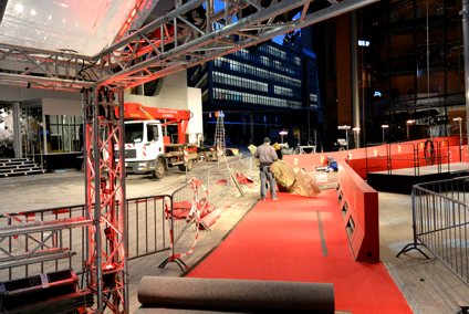 Es sind mehr als 1400 Mitarbeiter, die dafür sorgen, dass die Berlinale auch dieses Jahr pannefrei und minutengenau über die Bühne geht. Nur 40 von ihnen sind fest angestellt, Zur heißen Phase werden es dann aber immer mehr. Am Ende des Festivals sind dann mehr als 300.000 Tickets an alle Cineasten verkauft und das Bruttosozialprodukt der Stadt ist auch gesteigert. Bis dahin ist aber noch ein weiter Weg. Wir stehen erst am Anfang der Berlinale. Am Mittwochabend wurde noch gehämmert, gesägt und gestrichen. |
