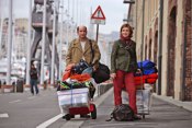 werden dort von der Sozialarbeiterin und einem Helfer empfangen.
