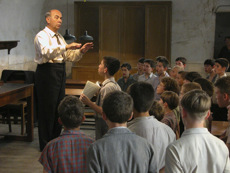 Wie haben Sie die Kinder gefunden? Allen voran wollte ich, dass die Rolle des kleinen Solisten von einem echten Sänger gespielt wird. Ich wusste, dass es nicht leicht werden würde, so je-manden zu finden, aber wir hatten unglaublich großes Glück. Auf unserer Tour durch Frankreich haben wir große Kinderchöre gehört, um einen für den Soundtrack des Films auszuwählen - und dabei haben wir den jungen Solisten Jean-Baptiste Maunier entdeckt. Er singt bei den Petits chanteurs de Saint-Marc in Lyon, verfügt über eine außergewöhnliche und sehr berührende Stimme. Als er auch das Vorsprechen als Darsteller brillant meisterte, habe ich mich für ihn entschieden. Für die übrigen Chor-Mitglieder wollte ich keine "professionellen" Kinderdarsteller engagieren, denn ich wollte nicht in die Falle der "dressierten Seelöwen" tappen. Wir haben in der Auvergne, in der Gegend, wo wir drehten, nach geeigneten Kindern gesucht. Sylvie Brocheré und ihre Assistentin versammelten Kinder - in Altersstufen von der Grundschule bis zur sechsten Klasse - aus der Gegend von Clermont-Ferrand. Nach über 2000 Castings habe ich genügend "geborene", natürliche Kinderdarsteller gefunden. Nur die aus Paris stammenden Théodule Carré Cassaigne und Thomas Blumenthal verfügten bereits über Schauspielerfahrung, haben sich aber reibungslos in die Reihen der Anfänger eingegliedert. Was nehmen Sie nun, nach der Fertigstellung des Films, daraus mit? Das Gefühl, dass ich diese Geschichte im Unterbewusstsein lange Zeit mit mir herumgetragen habe. Sie zu erzählen, hat es mir vielleicht möglich gemacht, manche Ereignisse meines eigenen Lebens zu verarbeiten, denn ich war selbst als Kind schon Musiker. Der Film war eine gute Therapie, erlaubte mir einen neuen Blick auf meine Kindheit, die zwar ganz und gar nicht unglücklich verlief, manchmal aber durchaus schwierig war - und das hat mich, wie so viele andere Menschen auch, verletzlich gemacht. Außerdem bekam ich mit diesem Film die Chance, über Musik zu sprechen, die nach wie vor eine meiner großen Leidenschaften ist. Genau wie Clément Mathieu hatte ich selbst nie eine Musikkarriere. Irgendwann habe ich es einfach aufgegeben. Und ich habe gewusst, dass ich irgendwann darüber würde sprechen müssen - und sei es auch nur, um zu entscheiden, ob ich damals mutig oder feige gehandelt hatte. Ich glaube, man kann leicht erraten, welche der Figuren aus DIE KINDER DES MONSIEUR MATHIEU ich wohl bin. den Schuldirektor eingeschlossen! ![]() Clément Mathieu ............................................... Gérard Jugnot Rachin ......................................................... François Berléand Chabert ................................................................... Kad Merad Père Maxence ............................................ Jean-Paul Bonnaire Violette Morhange ................................................. Marie Bunel Régent .............................................................. Paul Chariéras Comtesse ............................................................ Carole Weiss Monsieur Langlois .................................... Philippe du Janerand Doktor Dervaux .............................................. Erick Desmarestz Pierre Morhange als Erwachsener ................... Jacques Perrin Pierre Morhange ..................................... Jean-Baptiste Maunier Pépinot .............................................................. Maxence Perrin Mondain ........................................................... Grégory Gatignol Corbin ........................................................... Thomas Blumenthal ![]() Regie und Drehbuch ......................................... Christophe Barratier Kamera ................................................ Carlo Varini, Dominique Gentil Kostüme ................................................................ Françoise Guégan Musik ........................................................................... Bruno Coulais Ausstattung: ....................................................... François Chauvaud Les Choristes Land/Jahr: F 2003 95 Min. Der Original-Soundtrack zu DIE KINDER DES MONSIEUR MATHIEU ist bei Warner Music erschienen und enthält u.a. folgende Titel: "Nous sommes de Fond-de-l'Etang", "Vois sur ton chemin", Caresse sur l'océan", "Lueur d'été", "Kyrie", "Cerf-volant" und "La Nuit". ![]() ![]() ![]() |